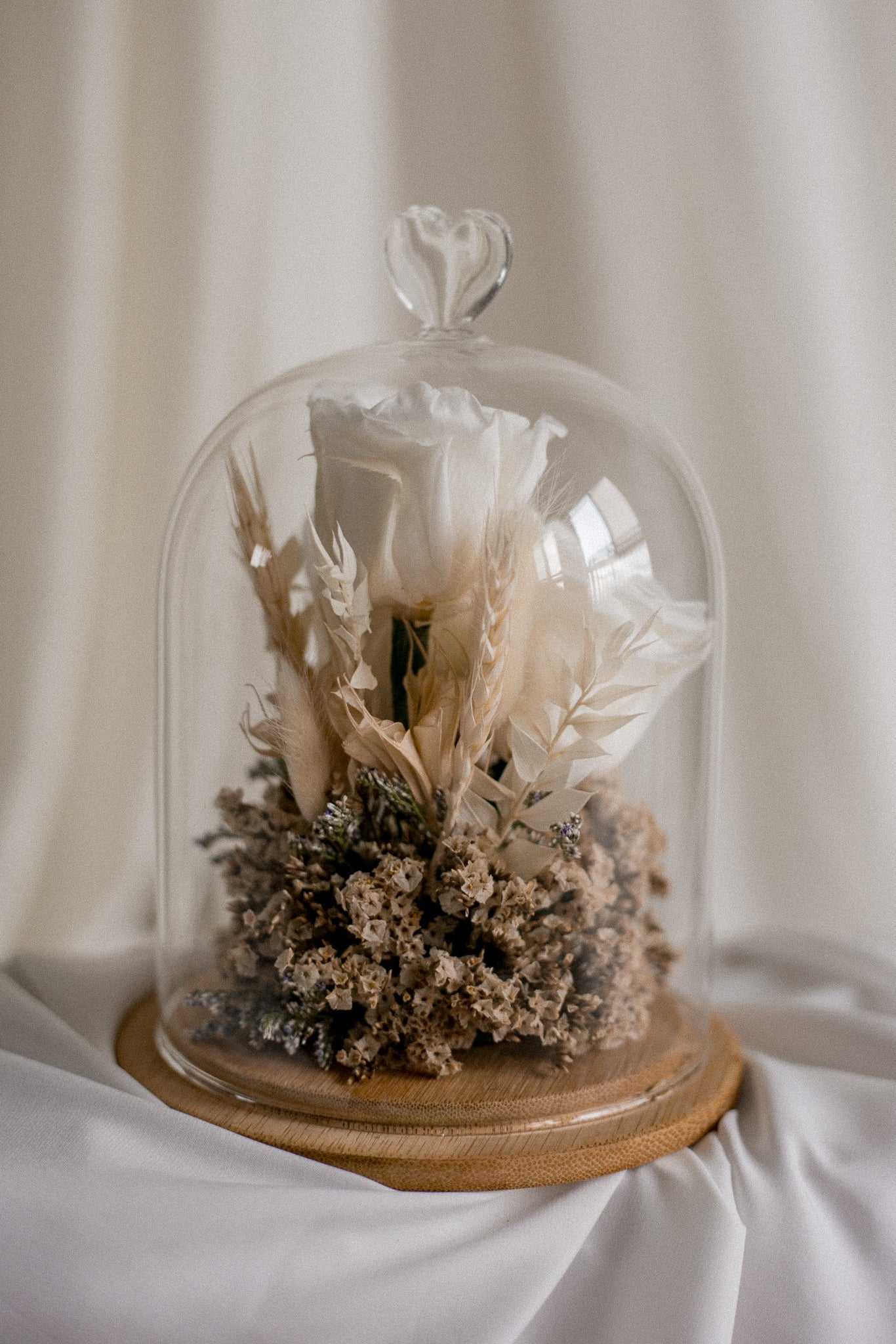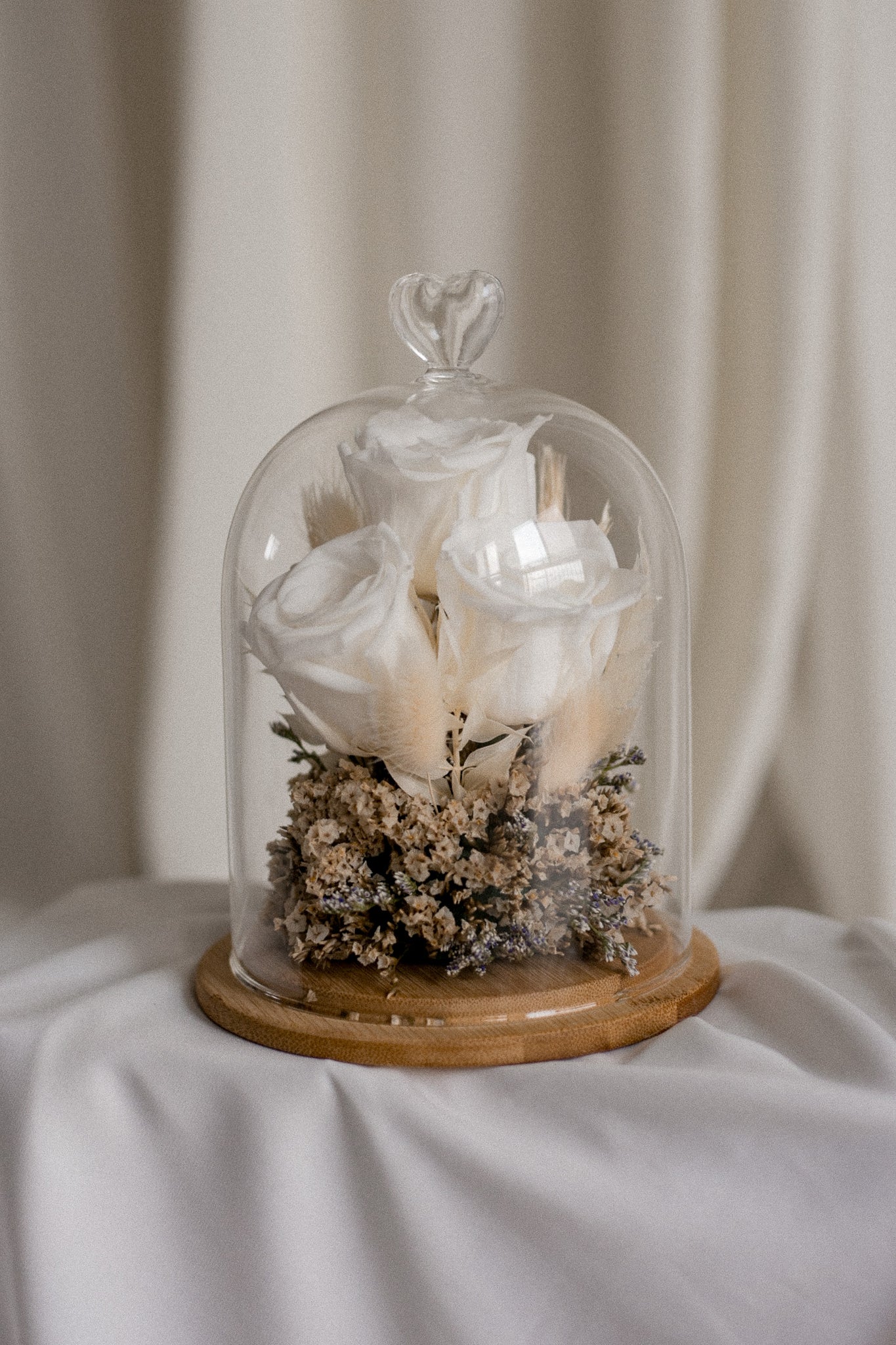 🌸Refrain from opening the glass. Naturally dried or preserved flowers last longer because they're safely housed inside the dome.