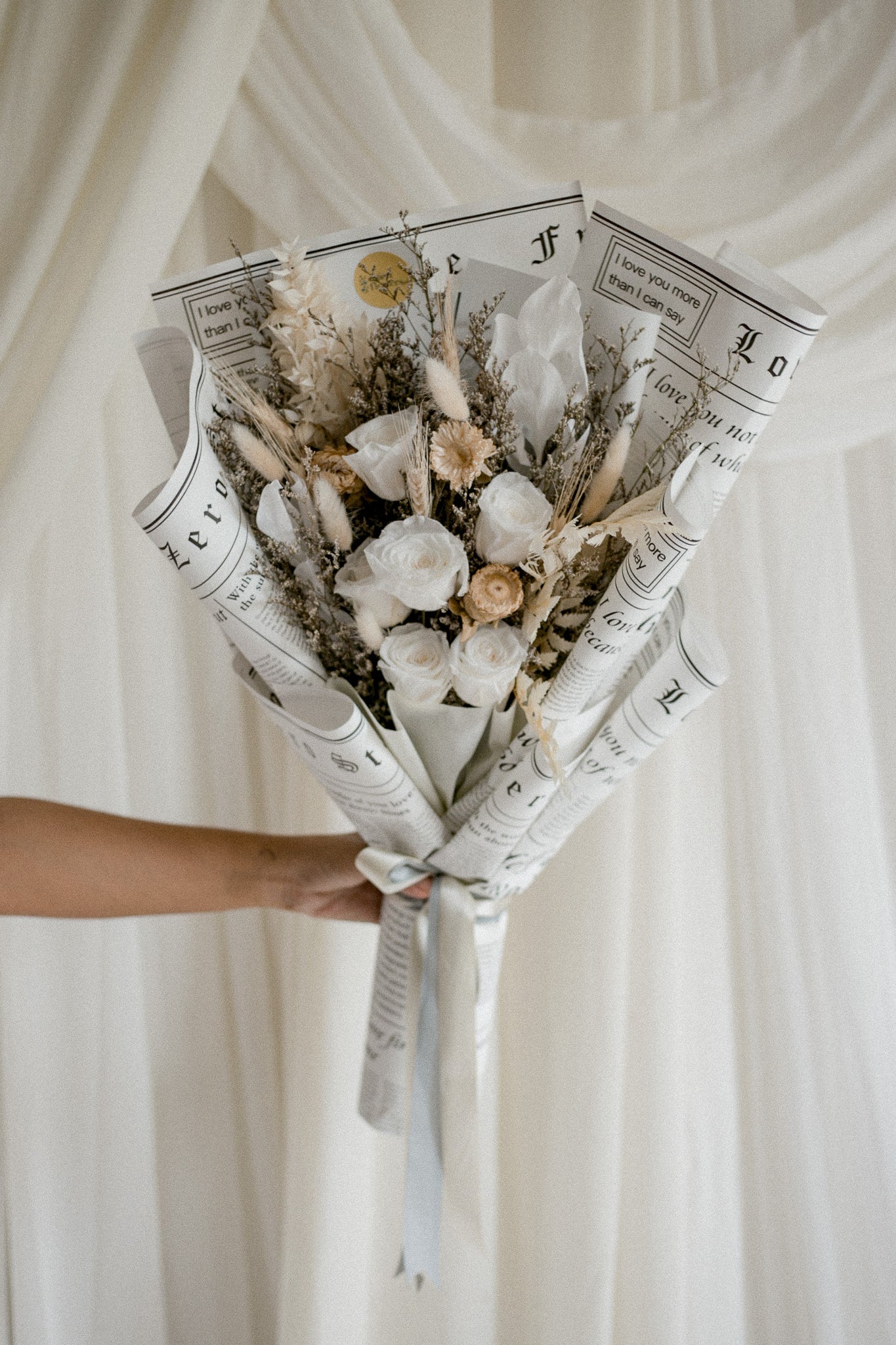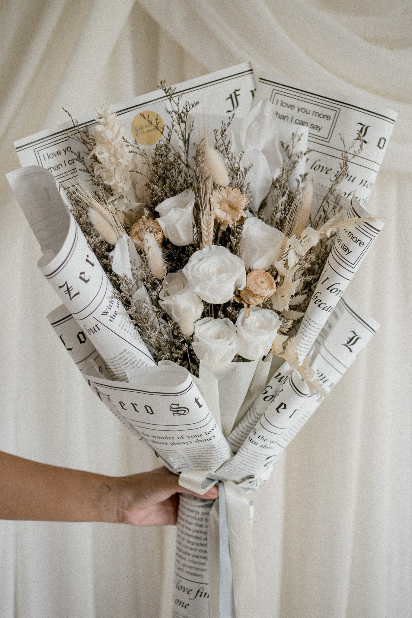 Inspired by Cloud Dancer, this neutral bouquet features 6 preserved roses. Elegant, timeless, and perfect for a subtle yet romantic Valentine’s gesture.